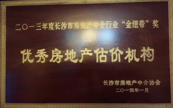 2013年度長沙市房地產(chǎn)中介行業(yè)“金紐帶”獎(jiǎng)和“優(yōu)秀房地產(chǎn)估價(jià)機(jī)構(gòu)”