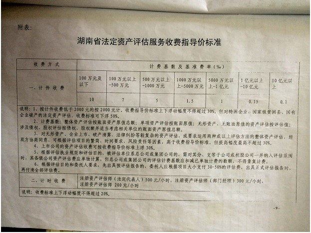 附表: 湖南省法定資產(chǎn)評(píng)估服務(wù)收費(fèi)指導(dǎo)價(jià)標(biāo)準(zhǔn)