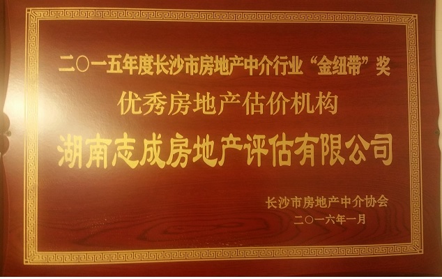 2015年度長(zhǎng)沙市房地產(chǎn)中介行業(yè)“金紐帶”獎(jiǎng)和“優(yōu)秀房地產(chǎn)估價(jià)機(jī)構(gòu)”