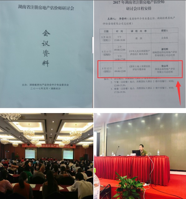 2017年5月12日上午在長(zhǎng)沙市西雅國(guó)際大酒店21樓會(huì)議室,受湖南省房地產(chǎn)業(yè)協(xié)會(huì)邀請(qǐng),湖南志成房地產(chǎn)評(píng)估有限公司總經(jīng)理徐志革對(duì)參加2017年全省注冊(cè)房地產(chǎn)估價(jià)師繼續(xù)教育培訓(xùn)人員主講《國(guó)有土地上房屋征收評(píng)估專題講座》,相互交流學(xué)習(xí)房屋征收評(píng)估工作經(jīng)驗(yàn)。