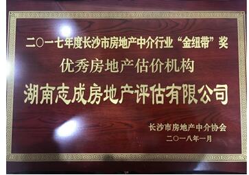 2017年度長(zhǎng)沙市房地產(chǎn)中介行業(yè)“金紐帶”獎(jiǎng)“優(yōu)秀房地產(chǎn)估價(jià)機(jī)構(gòu)”